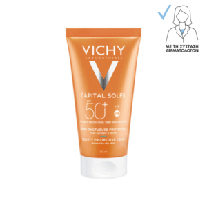 Αντηλιακή κρέμα SPF50+ χωρίς άρωμα, με ελαφριά υφή, αόρατο τελείωμα, κατάλληλη για ευαίσθητες επιδερμίδες και όλη την οικογένεια.