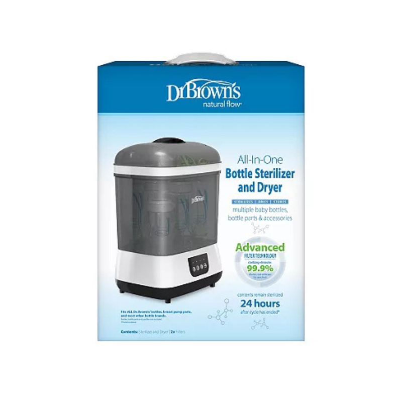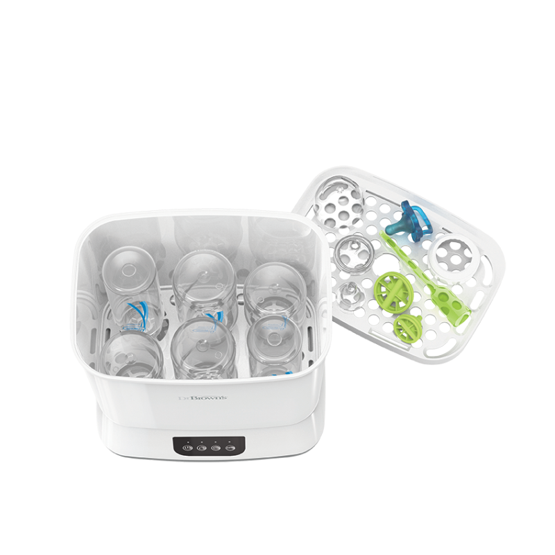 Περιλαμβάνει δοχείο μέτρησης και σχάρα για αξεσουάρ. Συμβατό με όλα τα μπιμπερό Dr Brown’s™ και τις περισσότερες μάρκες μπιμπερό.