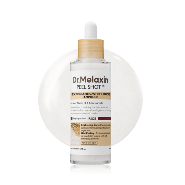 Η Dr. Melaxin Peel Shot Exfoliating White Rice Ampoule 80ml είναι μια απολεπιστική αμπούλα με λευκό ρύζι που προσφέρει ορατά αποτελέσματα από την πρώτη χρήση. Η προηγμένη της σύνθεση προσφέρει απαλή απολέπιση, απομακρύνοντας τα νεκρά κύτταρα του δέρματος, ενώ ταυτόχρονα παρέχει βαθιά θρέψη και ενυδάτωση, αφήνοντας την επιδερμίδα λεία, φωτεινή και αναζωογονημένη.