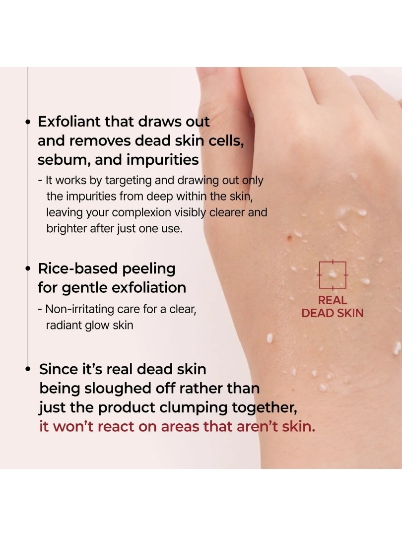 | Χαρακτηριστικά | AHA, BHA, Απαλή Απολέπιση, Ασφαλής, Δερματολογικά ελεγμένα, Ενυδατική, Λείανση, Νιασιναμίδη, Ρύζι |