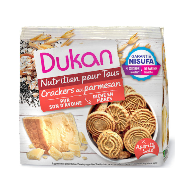 Απολαύστε τα Dukan Αλμυρά Κρακεράκια Βρώμης με Τυρί Παρμεζάνα, Παπαρουνόσπορο και Σουσάμι, μια λαχταριστή και υγιεινή επιλογή για όσους αγαπούν τα αλμυρά σνακ χωρίς ενοχές.
