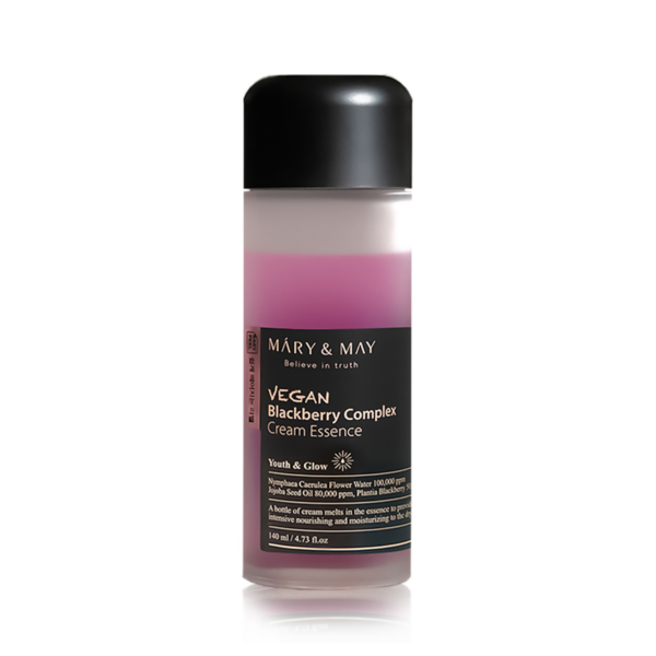 Το Mary & May Vegan Blackberry Complex Cream Essence είναι ένα καινοτόμο διφασικό προϊόν περιποίησης που συνδυάζει τα οφέλη μιας κρέμας και ενός essence σε μία μόνο φόρμουλα. Χάρη στην τεχνολογία Double Phase Emulsion, η πλούσια υφή του απορροφάται άμεσα, ενυδατώνοντας σε βάθος χωρίς να βαραίνει το δέρμα ή να αφήνει λιπαρότητα. Με 50.000 ppm εκχύλισμα βατόμουρου, πλούσιο σε αντιοξειδωτικές ανθοκυανίνες, και 100.000 ppm νερό μπλε λωτού για ενίσχυση της ενυδάτωσης και της ελαστικότητας, προσφέρει θρέψη και αντιγηραντική δράση. Εμπλουτισμένο με jojoba oil, κηραμίδια και centella asiatica, ενδυναμώνει τον δερματικό φραγμό και καταπραΰνει την επιδερμίδα. Ιδανικό για όλους τους τύπους δέρματος, ακόμη και τους πιο ευαίσθητους.