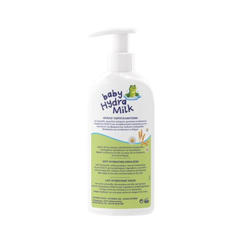 Ενυδατικό γαλάκτωμα κατάλληλο για το ξηρό και ευαίσθητο δέρμα. Με φυσιολογικούς ενυδατικούς παράγοντες για πλούσια και σε βάθος ενυδάτωση του δέρματος. Περιποιείται και μαλακώνει το δερματάκι του μωρού και προλαμβάνει την αφυδάτωση και την ξηροδερμία. Εμπλουτισμένο με πρωτεΐνες σιταριού για την ενίσχυση του υδρολιπιδικού μανδύα, που αφήνει ένα λεπτό στρώμα υδρολιπιδικής ισορροπίας για την προστασία της επιδερμίδας από ερεθισμούς. Παράλληλα, περιέχει εκχύλισμα χαμομηλιού για αντιφλογιστική και αντιερεθιστική δράση και αντιφλογιστικά συστατικά με επουλωτικές και καταπραϋντικές ιδιότητες.