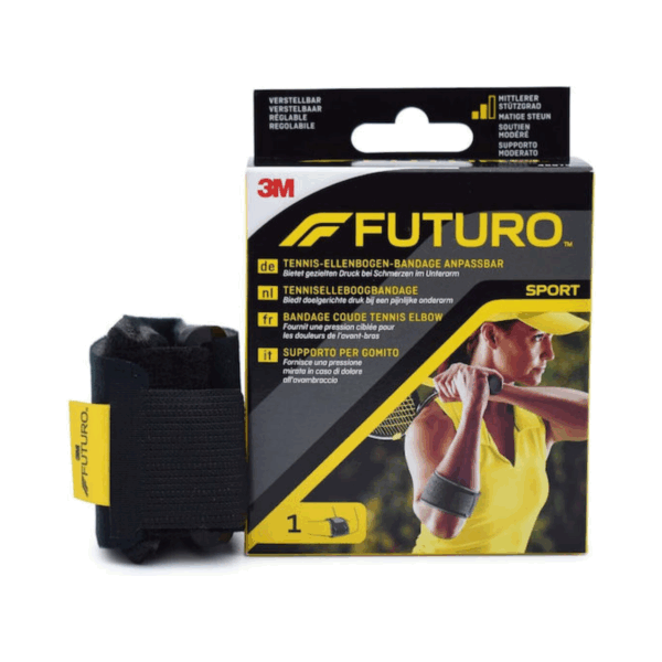 Ο Futuro Sport Tennis Επίδεσμος Αγκώνα προσφέρει ρυθμιζόμενη πίεση και σταθερότητα στην περιοχή του αγκώνα, χάρη στον ειδικό ιμάντα συμπίεσης.