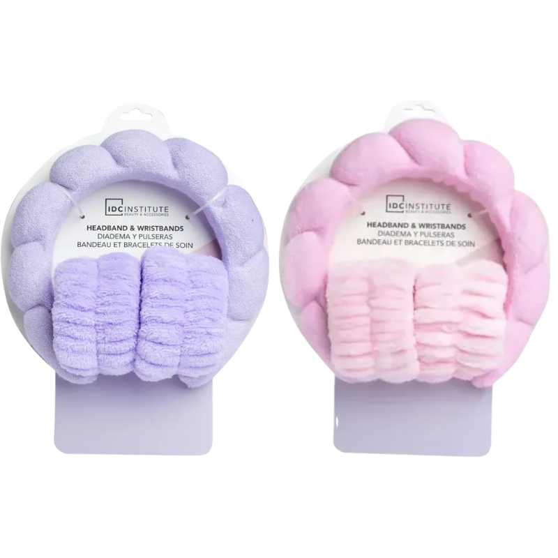 Το IDC Skincare Headband & Wristbands είναι το ιδανικό σετ αξεσουάρ για κάθε ρουτίνα περιποίησης, προσφέροντας άνεση, πρακτικότητα και χαριτωμένο στυλ. Η απαλή κορδέλα κρατά τα μαλλιά σταθερά και μακριά από το πρόσωπο, ώστε να εφαρμόζεις προϊόντα, μάσκες ή makeup χωρίς ενοχλήσεις. Τα περικάρπια απορροφούν το νερό και τα προϊόντα, αποτρέποντας τις ανεπιθύμητες σταγόνες που καταλήγουν στους αγκώνες κατά το πλύσιμο του προσώπου.