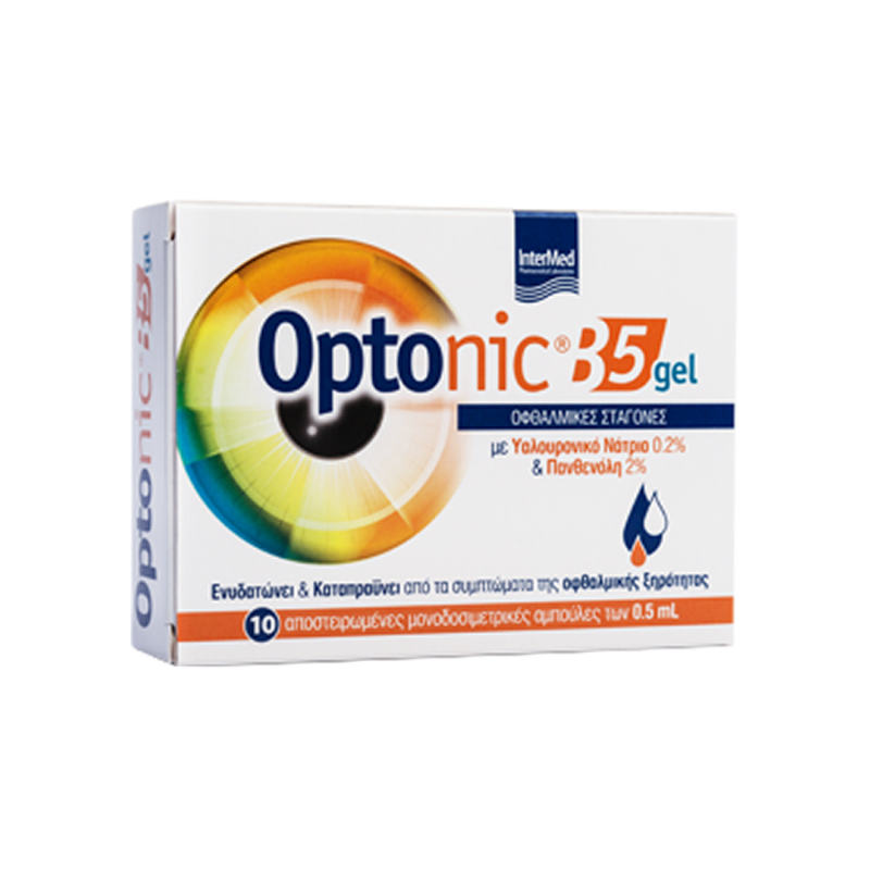 Το Optonic B5 Gel είναι στείρο οφθαλμικό διάλυμα με υαλουρονικό νάτριο 0,2% και πανθενόλη (προβιταμίνη B5) 2%, σχεδιασμένο για ενυδάτωση, λιπαντική προστασία και καταπράυνση της οφθαλμικής ξηρότητας.