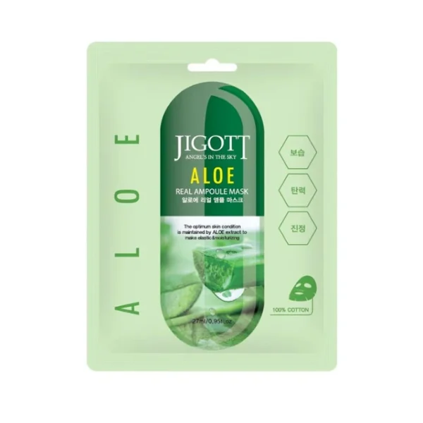 Η Jigott Aloe Mask είναι μία υφασμάτινη μάσκα προσώπου με εκχύλισμα αλόης βέρα, ειδικά σχεδιασμένη για να προσφέρει εντατική ενυδάτωση, καταπράυνση και φροντίδα στην επιδερμίδα. Η σύνθεσή της βοηθά στην ανακούφιση του δέρματος, ιδιαίτερα όταν παρουσιάζει ερεθισμούς, λιπαρότητα ή τάση ακμής.
