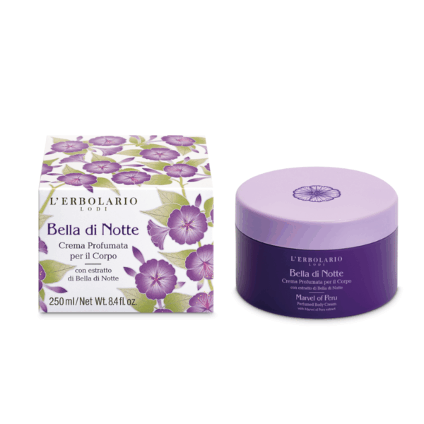 Αυτή η μοναδική κρέμα σώματος έχει ένα πλούσιο, έντονα λουλουδάτο άρωμα, με έναν εκλεπτυσμένο συνδυασμό από βούτυρο καριτέ και εκχυλίσμα από το λουλούδι Bella di Notte, που ενυδατώνει την επιδερμίδα.