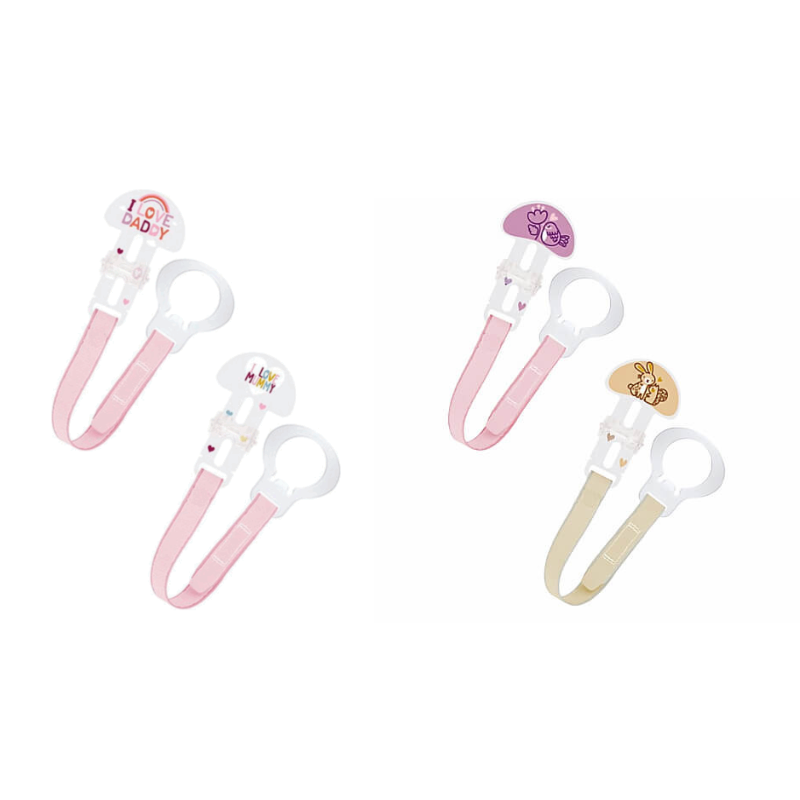 Το σετ κλιπ πιπίλας από τη MAM με ύφασμα “I ♥ Daddy / I ♥ Mommy” σε ροζ χρώμα, προσφέρει ασφαλή και πρακτική στήριξη για πιπίλες αλλά και κρίκους οδοντοφυΐας. Είναι εύκολο στη χρήση, με ρυθμιζόμενο μήκος και απαλό ύφασμα, ιδανικό για την ευαίσθητη επιδερμίδα του μωρού.