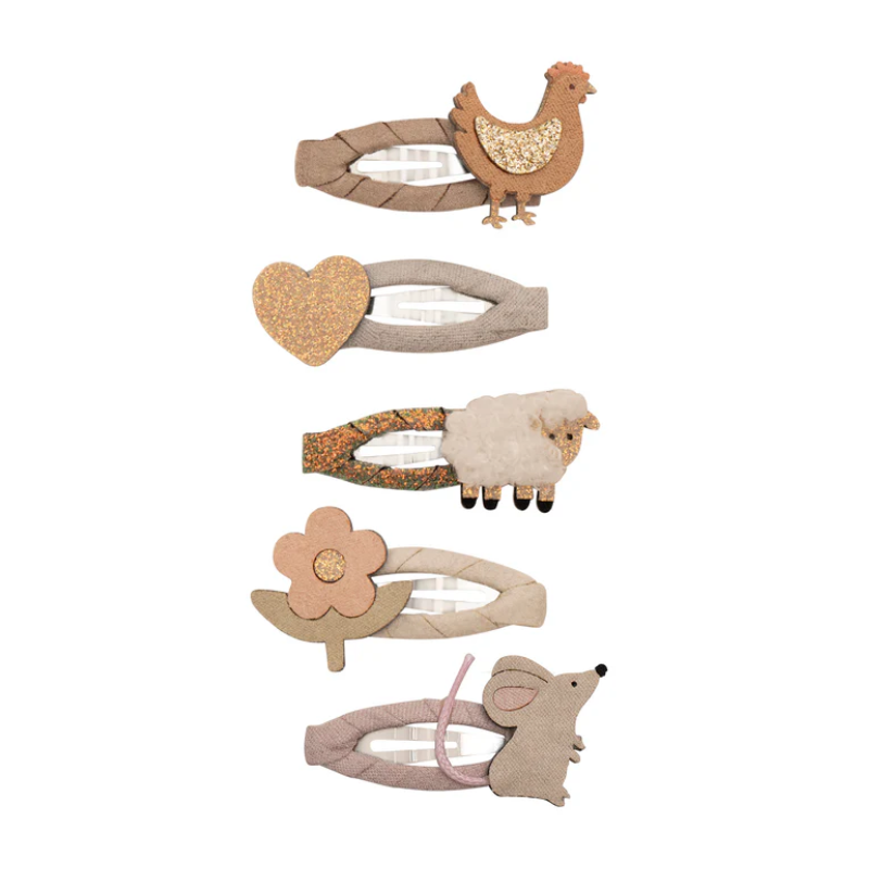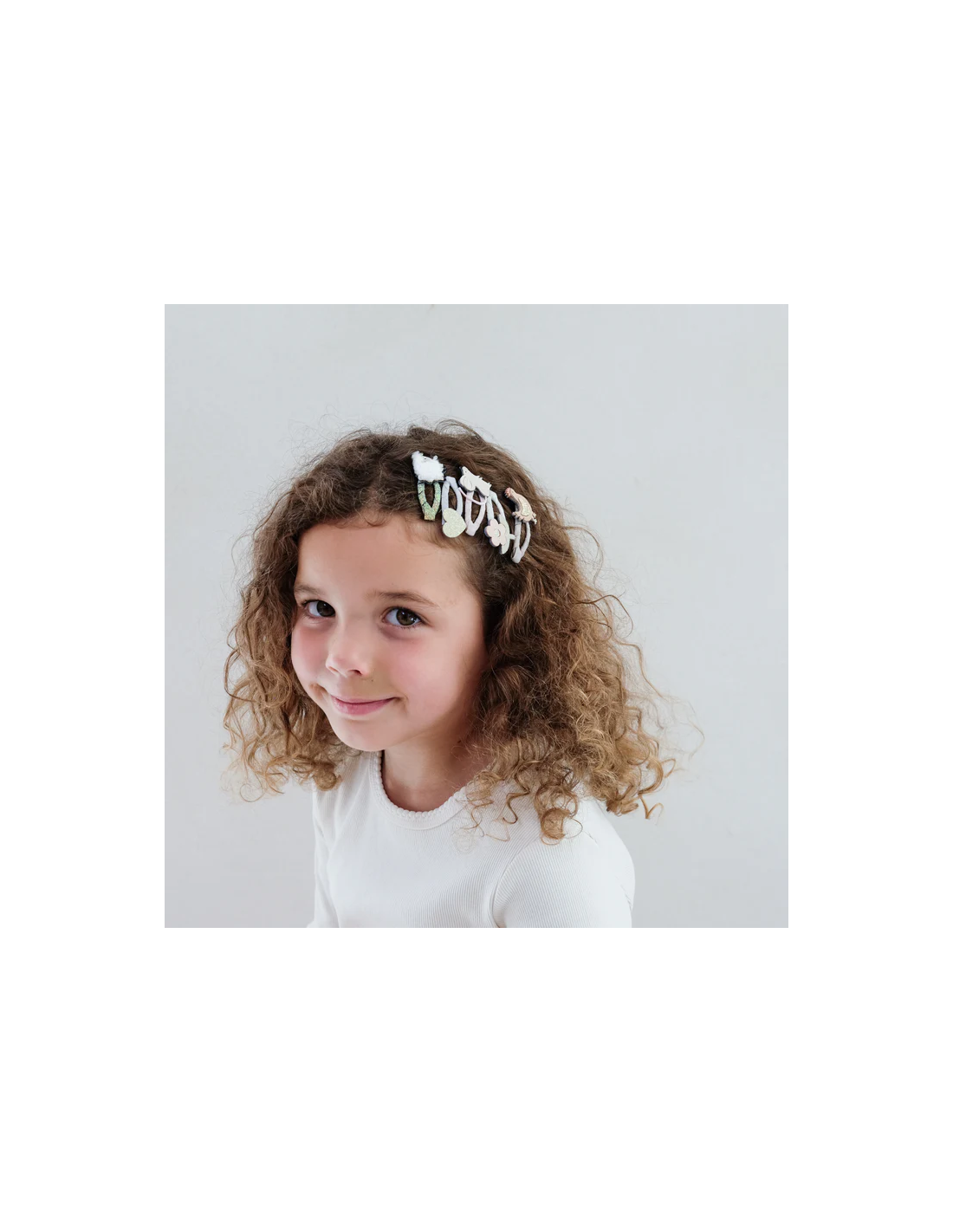 Ανακάλυψε το Σετ Παιδικών Κοκαλιών με Κλιπ – Mimi & Lula, ιδανικό για κάθε μικρή πριγκίπισσα! Το σετ περιλαμβάνει 5 κοκαλάκια με κλιπ, διακοσμημένα με χαριτωμένα φρούτα σε πολύχρωμες αποχρώσεις, προσφέροντας μια παιχνιδιάρικη και χαρούμενη πινελιά στα μαλλιά των παιδιών.