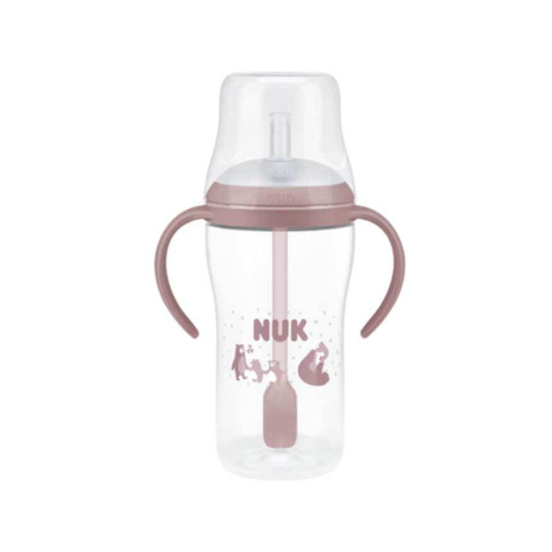 Εκπαιδευτικό μπιμπερό NUK με καλαμάκι σιλικόνης, λαβές και ένδειξη θερμοκρασίας για ασφαλή, εύκολη και αυτόνομη κατανάλωση υγρών.