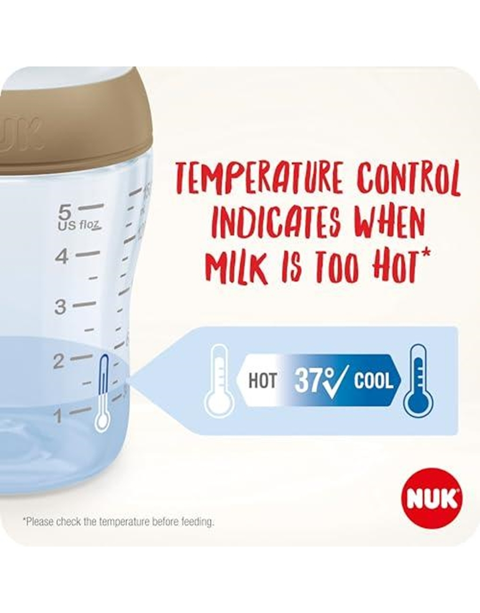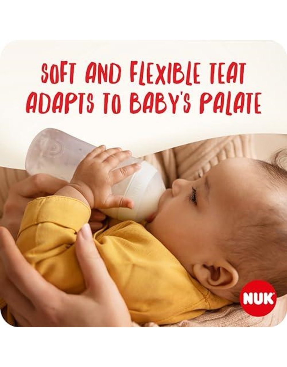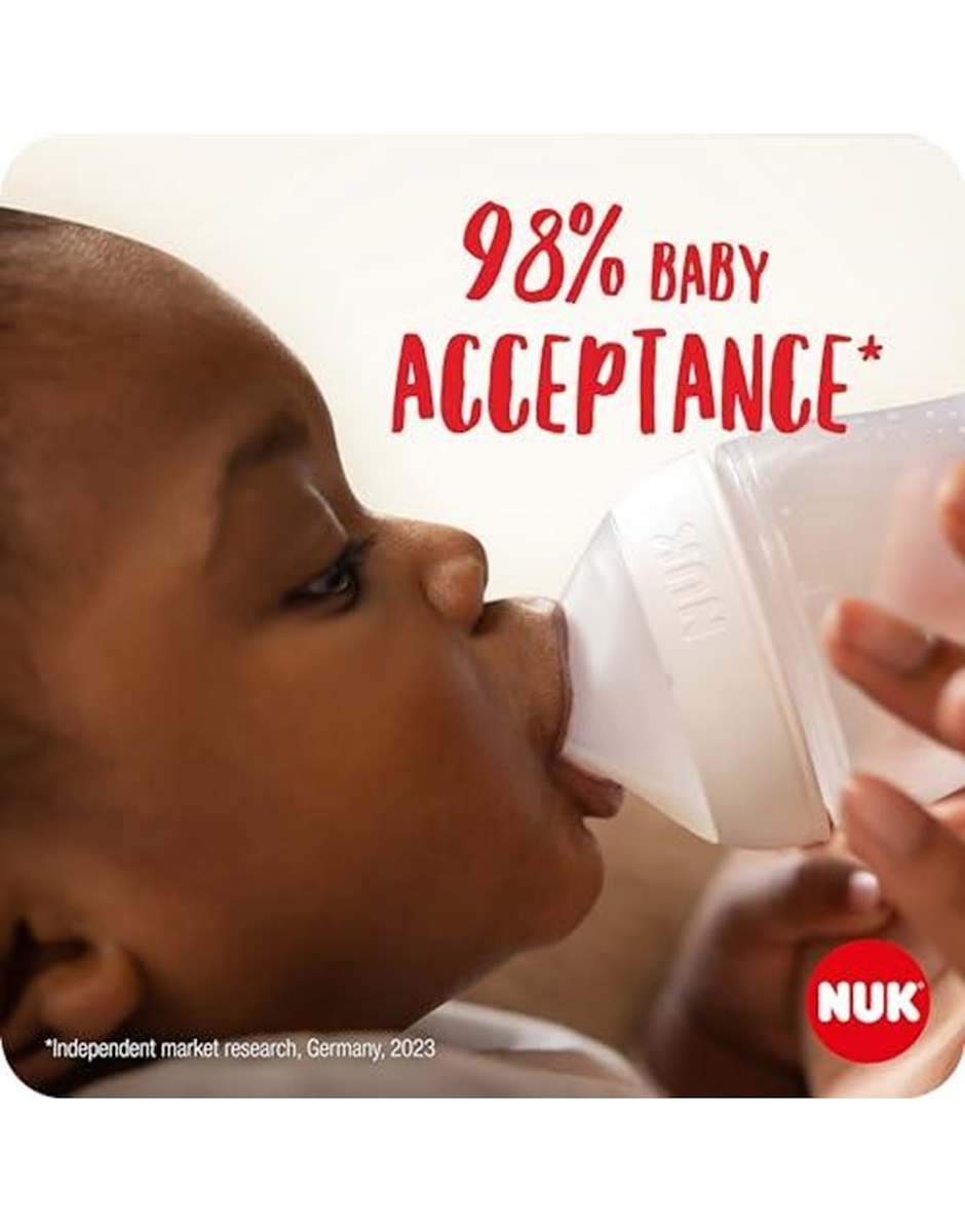 Το μπιμπερό NUK Nature Sense 150ml είναι σχεδιασμένο για να προσφέρει στο μωρό μια εμπειρία σίτισης όσο πιο κοντά γίνεται στον φυσικό θηλασμό. Η μαλακή και ελαστική σιλικόνη της θηλής προσαρμόζεται απαλά στα χείλη και τον ουρανίσκο του μωρού, προσφέροντας φυσική αίσθηση και άνεση. Η ομαλά κωνική μορφή της διευκολύνει τη σωστή πρόσδεση, επιτρέποντας στο μωρό να ανοίγει σωστά το στόμα και να τοποθετεί τα χείλη γύρω από τη θηλή, όπως κατά τον θηλασμό.