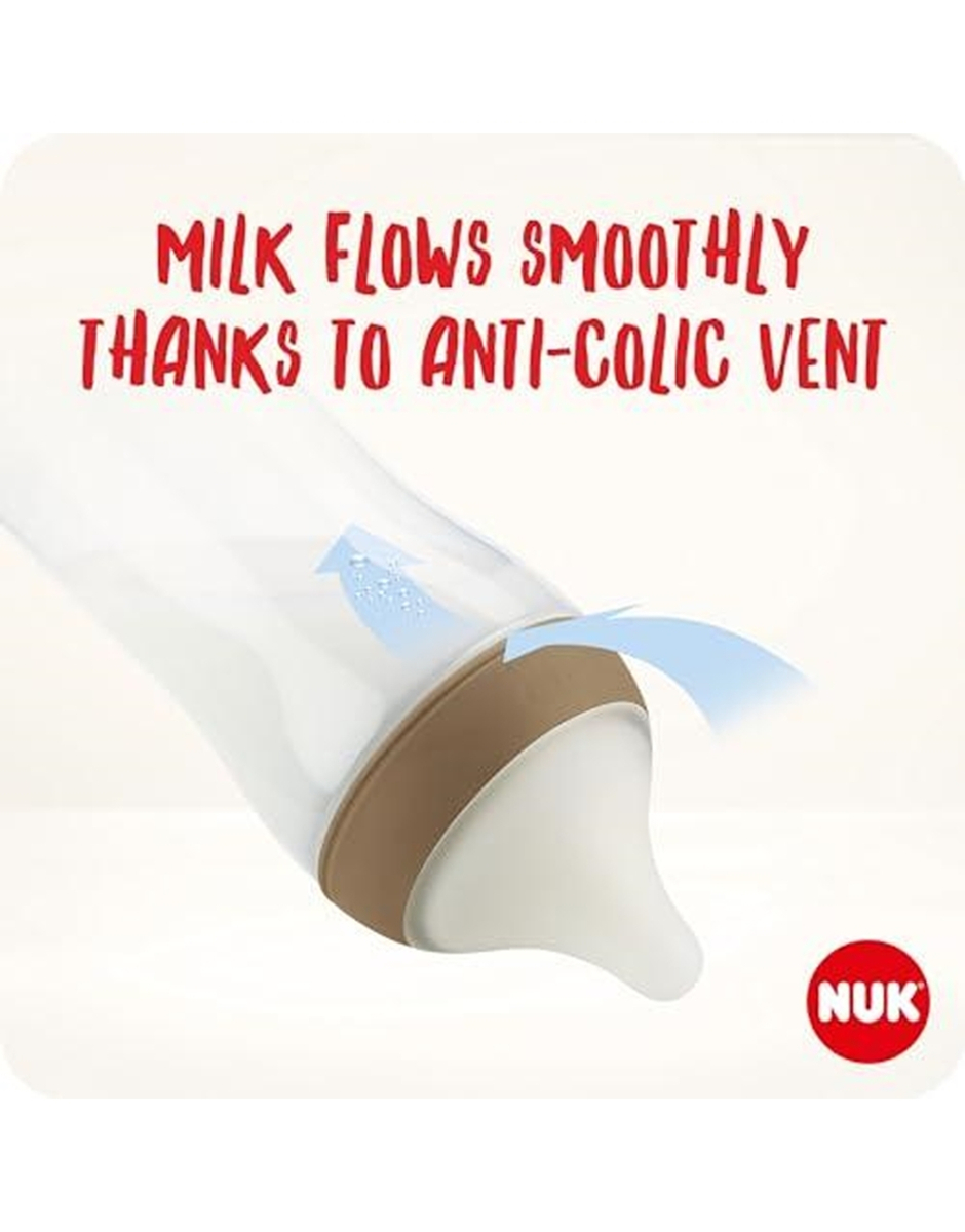Η καινοτόμος βαλβίδα κατά των κολικών αποτρέπει την κατάποση αέρα, μειώνοντας έτσι τη δυσφορία και το φούσκωμα. Διαθέτει τρεις επιλογές ροής (S, M, L), ώστε να προσαρμόζεται ιδανικά στις ανάγκες του κάθε μωρού. Επιπλέον, η ένδειξη θερμοκρασίας στο πλάι αλλάζει χρώμα από μπλε σε λευκό όταν το γάλα είναι πολύ ζεστό, βοηθώντας τον γονέα να εξασφαλίσει την τέλεια θερμοκρασία κάθε φορά.