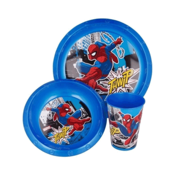 Μετατρέψτε το γεύμα σε περιπέτεια με το Σετ Φαγητού 3 τμχ Spider-Man! Το σετ περιλαμβάνει ποτήρι, μπολ και πιατάκι, όλα διακοσμημένα με τον αγαπημένο ήρωα της Marvel. Κατασκευασμένο από ανθεκτικό πλαστικό, BPA free, ιδανικό για καθημερινή χρήση. Το σετ έρχεται σε κουτί δώρου, ιδανικό για κάθε μικρό fan του Spider-Man. Τέλειο για μεσημεριανό ή βραδινό γεύμα στο σπίτι, στο σχολείο ή στις εκδρομές.