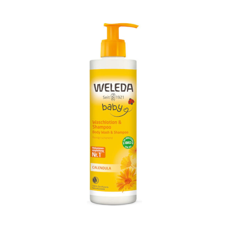 Το Weleda Baby Σαμπουάν & Αφρόλουτρο Καλέντουλας 400ml προσφέρει ήπιο καθαρισμό για το ευαίσθητο δέρμα και τα μαλλιά του μωρού. Περιέχει εκχύλισμα βιολογικής καλέντουλας και γλυκό αμυγδαλέλαιο, που προστατεύουν από την ξηρότητα, διατηρούν τον φυσικό προστατευτικό μανδύα του δέρματος και διευκολύνουν το χτένισμα των μαλλιών.
